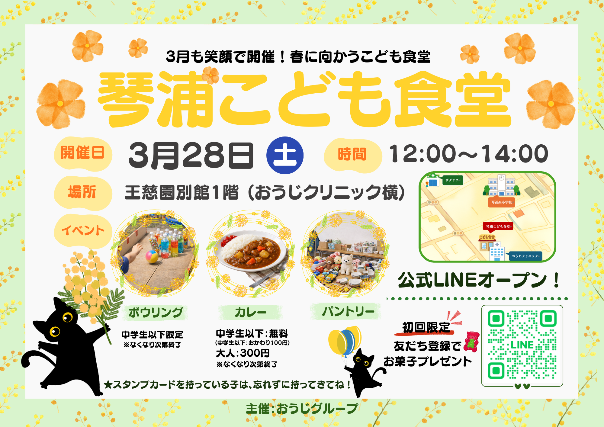 琴浦子ども食堂からのお知らせ 2026.03.13 その他のお知らせ 3月28日(土)12時~14時 王慈園別館1階(おうじクリニック横) 子ども食堂を開催いたします。 中学生まではカレーライス無料🍛 今回はボウリングもあるよ🎳 自由診療からのお知らせ 前の記事